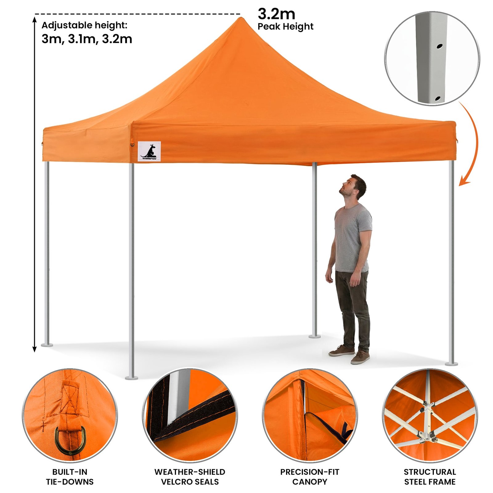 Wallaroo Gazebo Tent Marquee 3×3 PopUp Outdoor Orange