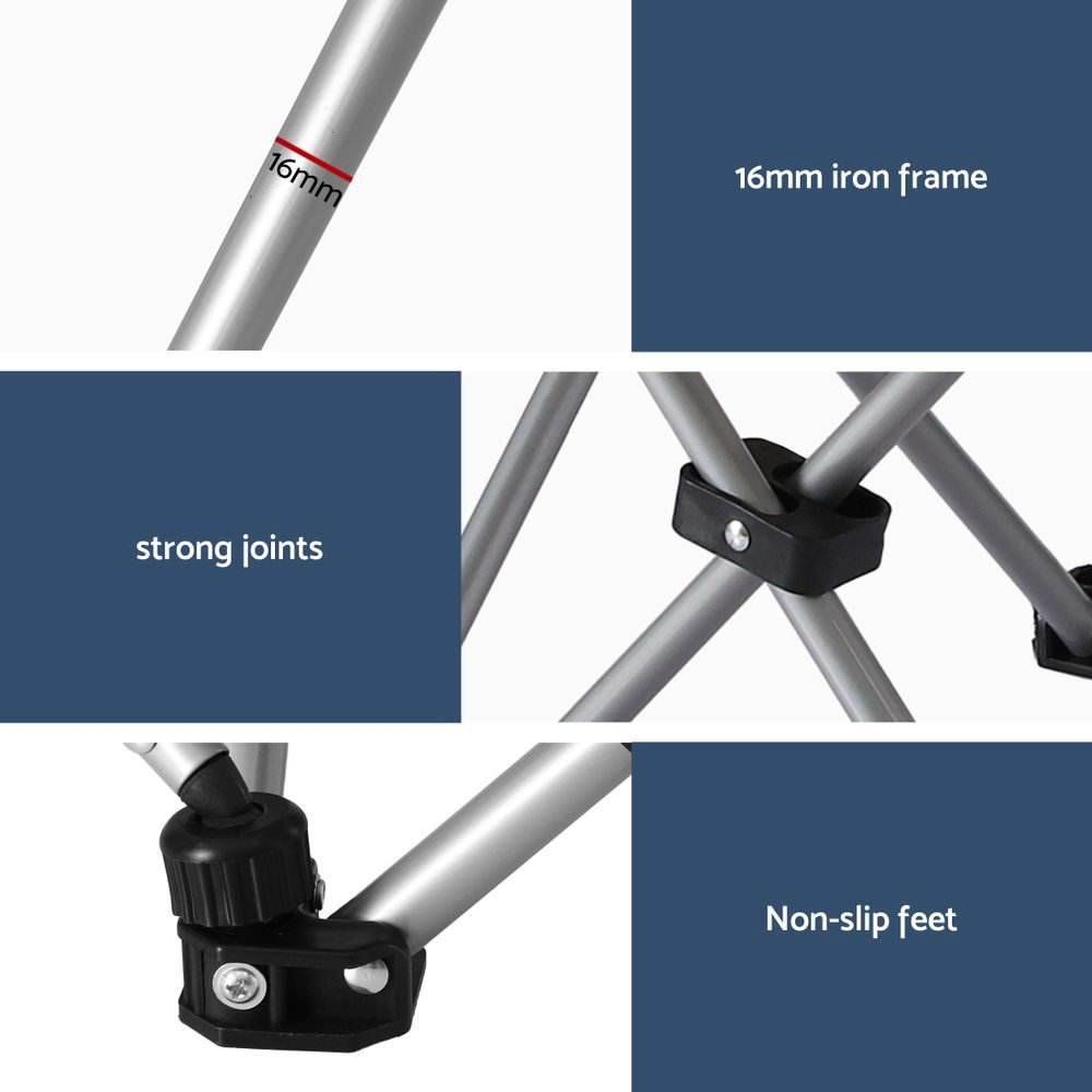 Experience versatile comfort wherever your adventures take you with the Weisshorn Reclining Camping Chair. Designed with a smart 2-in-1 function, this chair easily transforms from a supportive seat into a relaxing bed, giving you the flexibility to lounge your way. The 4-level adjustable backrest lets you find the perfect angle, whether you’re sitting upright by the campfire, reclining with a book, or lying back for an afternoon nap. Crafted from strong yet breathable 600D Oxford fabric, paired with a durable iron frame, this chair provides lasting support with a maximum load capacity of 130kg while weighing only 3kg for effortless portability. Thoughtful details enhance your outdoor comfort, including a removable pillow for personalised head and neck support, a built-in drink holder to keep your beverage close at hand, and a side storage pocket for essentials like phones, snacks, or sunglasses. Compact and easy to carry, it folds down neatly when not in use, making it simple to store in your car, caravan, or shed. With no assembly required, the Weisshorn Reclining Camping Chair is ready for action in seconds, whether you’re at the campsite, beach, park, or even your backyard. Blending lightweight portability with practical design, it’s the perfect companion for campers, travellers, and anyone who enjoys relaxing outdoors in comfort.