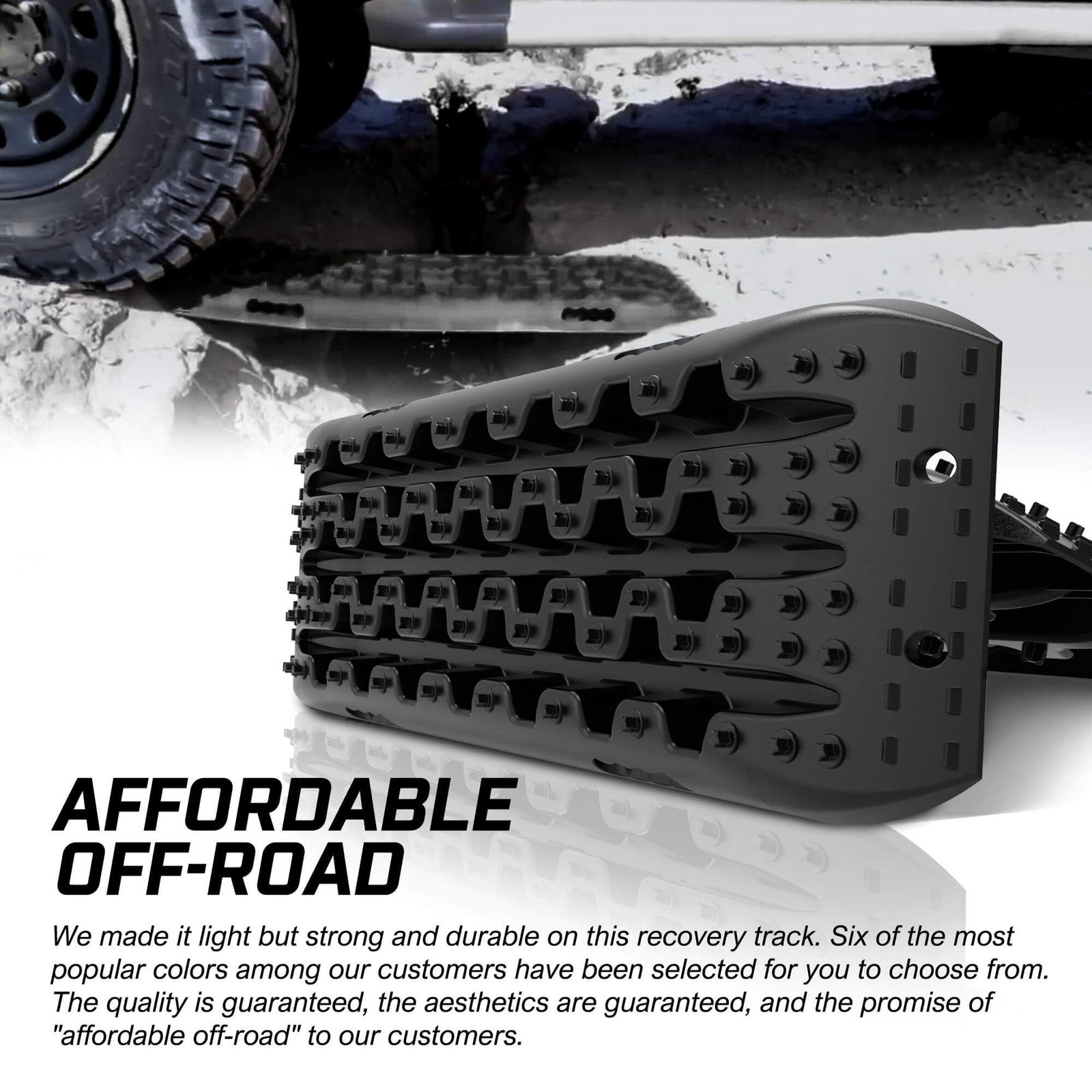Gen3.0 has a longer length and the unique rivet design is more wear-resistant and lasts longer. Suitable for use in any terrain or any off-road situation, it is a recovery track with strong comprehensive capabilities.